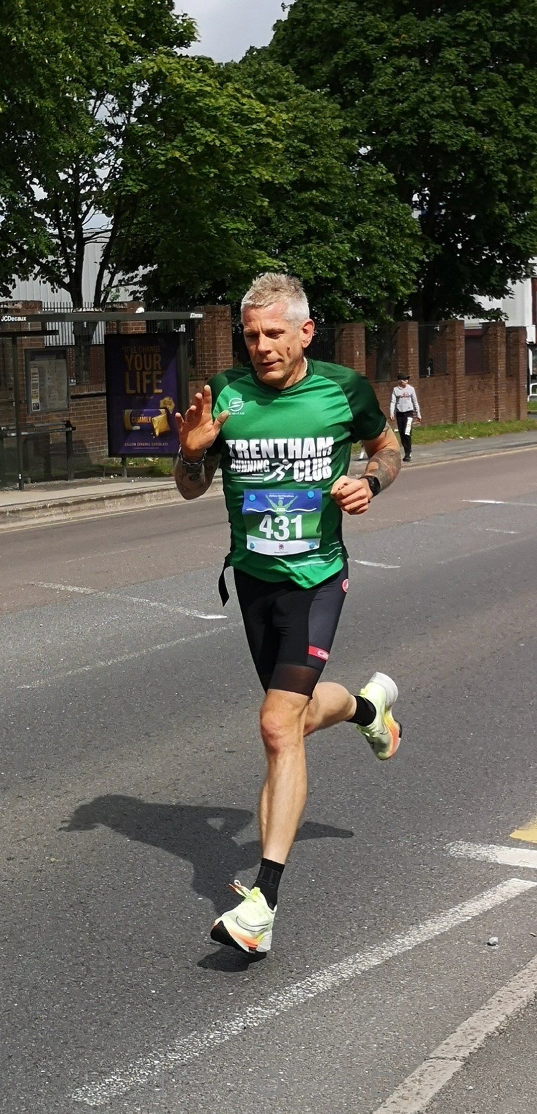 Seen here with Vanessa Welham (Stafford Harriers), and Dr David Weldon (also Trentham RC) and all doing well for Stoke-on-Trent